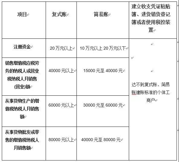 而记账方式可以是:复式账、简易账、收支凭证粘贴薄、进货销货登记薄或者使用税控装置。